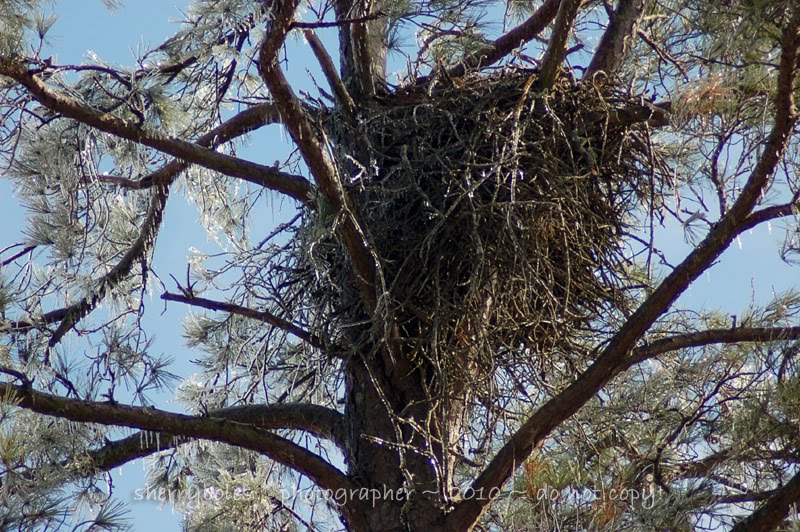 As soon as I could get to the nest, I did. I anxiously surveyed the damage...some broken limbs, the nest covered in ice and portions of the nest drooping with the weight of the ice. What I did not see was the eagles.